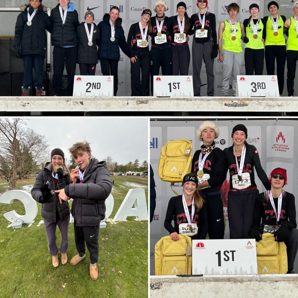 That’s a wrap on the 2025 cross-country season and what a way to go out! Once again, the Canadian Cross Country Championships were held at Fanshawe Golf Course, and true to form, it was snowy, breezy, cold (both days), and a sloppy course for Sunday’s mixed relay. Not to be deterred the CTAC ‘A’ U18 4 x 2k Mixed Relay team won the team Gold and are the 2025 U18 Canadian Cross Country Champions! Congratulations Oliver, Rebecca, William and Kieva. Equally impressive was the performance of the CTAC ‘B’ team. Fifty-seven teams from across Canada raced the event. The team of Matthew, Chloe, Jacob and Niamh finished 19th! Not to be overshadowed by Sunday’s results, Saturday’s team races demonstrated CTAC’s depth of talent. All four teams finished in the Top 10; U16G and U16B were 9th, U18G 4th, and the U18B 7th. Individually CTAC had four in the Top 20, including Niamh 9th, Rebecca 6th, Kieva 14th, and William 7th. Strong running in difficult conditions. What a blast the whole weekend was! Congratulations to all on an incredible finish to a very successful season!! For complete results use this link; https://live.athletic.net/meets/59274